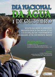 A Câmara Municipal de Évora, em parceria com a Águas do Centro Alentejo, assinala o Dia Nacional da Água, no dia 1 de Outubro, com um convite aberto a toda a população: a visita guiada à Unidade Museológica da Água (Central Elevatória de Águas) e à Estação de Tratamento de Águas (ETA) do Monte Novo.